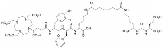 - Benešova, M.; Schäfer, M.; Baüder-Wust, U.; Afshar-Oromieh, A.; Kratochwil, C.; Mier, W.; Haberkorn, U.; Kopka, K.; Eder, M. Preclinical Evaluation of a Tailor-Made DOTA-Conjugated PSMA Inhibitor with Optimized Linker Moiety for Imaging and Endoradiotherapy of Prostate Cancer. J. Nucl. Med. 2015, 56, 914–920. [Google Scholar] [CrossRef] [PubMed] [Green Version]