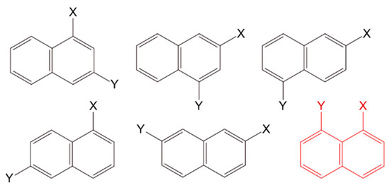 Structures of meta-type disubstituted naphthalene derivatives (X—substituent, Y—probe).