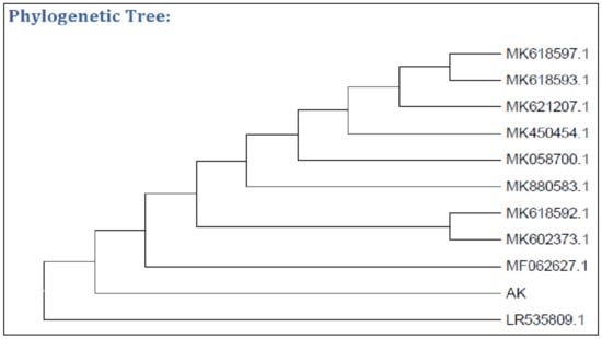 Phylogenetic tree showing the position of isolated bacterium (AK).