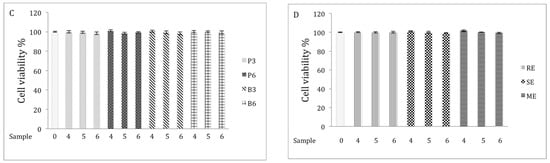 The carbohydrate content of the polysaccharide extracts was determined using a slightly modified phenol-sulphuric acid method reported by Masuko et al. []. Briefly, 1 mL of sample solution, 0.05 mL of 80% phenol, and 5 mL of concentrated sulfuric acid were mixed and shaken. Following this, the mixture was held at room temperature for 10 min and the absorbance was measured at 490 nm. The total carbohydrate content was calculated using D-glucose as a standard.