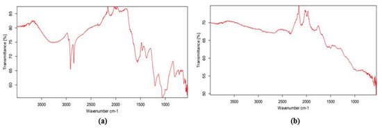 FTIR spectrum of silver nanoparticles synthesized using the leaf extract of Acer oblongifolium and AgNO3: (a) 25 mM precursor solution of AgNO3, (b) 1 M precursor solution of AgNO3.