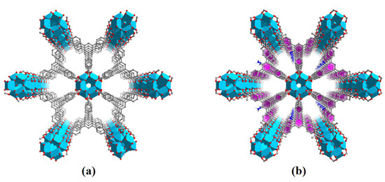 Crystal structures of the ZSTU-2 (a) and NH2-ZSTU-2 (b).