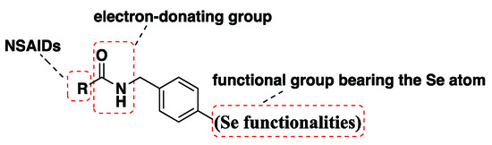 - Plano, D.; Karelia, D.N.; Pandey, M.K.; Spallholz, J.E.; Amin, S.; Sharma, A.K. Design, synthesis, and biological evaluation of novel selenium (Se-NSAID) molecules as anticancer agents. J. Med. Chem. 2016, 59, 1946–1959. [Google Scholar] [CrossRef]