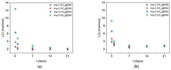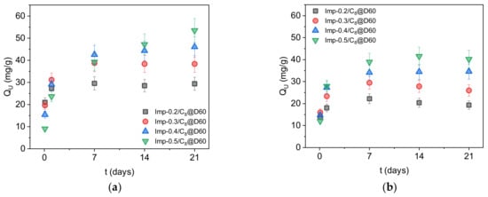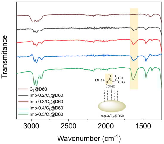 | Imp-0.3/C8@D60 | 39 (±4) | 1.9 (± 0.2) | 1–7 | 29 (±2) | 2.5 (±0.3) | 1–7 |