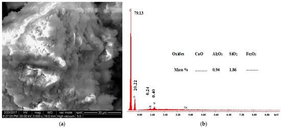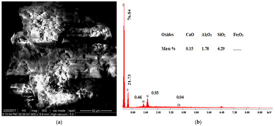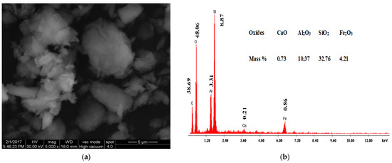SEM micrographs (a) and EDAX spectra (b) of AH raw clay.