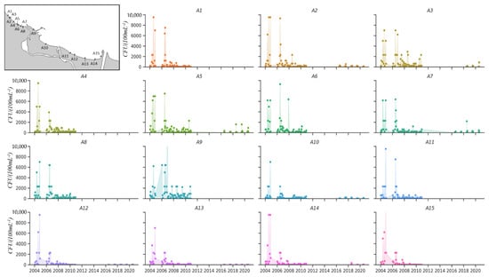 - Szumilas, T.; Michalska, M.; Bartoszewicz, M. Changes of sanitary conditions of coastal waters near Gdańsk in years 1993–2002. Inżynieria Morska i Geotech 2004, 3, 131–138. [Google Scholar]
