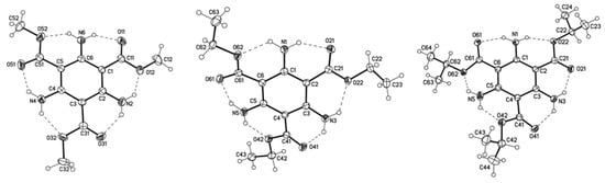 - Wolff, J.J. Structures of benzene derivatives with symmetrical substitution by three donor and three acceptor groups. Adv. Strained Interesting Org. Mol. 1999, 7, 43–101. [Google Scholar] [CrossRef]