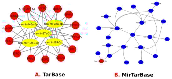 - Hsu, S.D.; Lin, F.M.; Wu, W.Y.; Liang, C.; Huang, W.C.; Chan, W.L.; Tsai, W.T.; Chen, G.Z.; Lee, C.J.; Chiu, C.M.; et al. miRTarBase: A database curates experimentally validated microRNA–target interactions. Nucleic Acids Res. 2011, 39, D163–D169. [Google Scholar] [CrossRef] [Green Version]