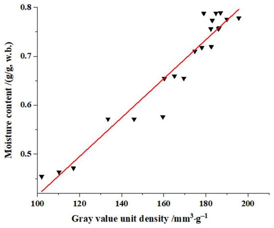 3.3.2. Relationship between the Gray Value of Proton Density and the Moisture Content