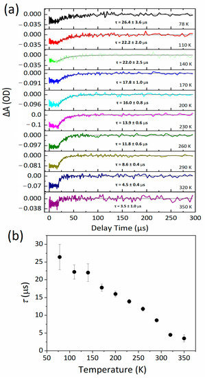 3.4. Temperature-Dependent Ultrafast Transient Absorption Measurements