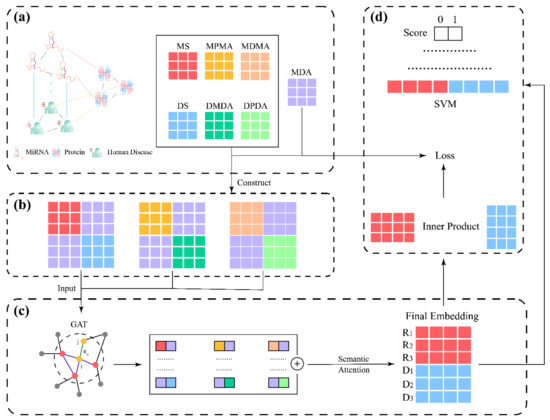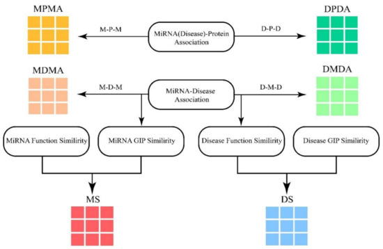 - Chen, X.; Yin, J.; Qu, J.; Huang, L. MDHGI: Matrix decomposition and heterogeneous graph inference for miRNA-disease association prediction. PLoS Comput. Biol. 2018, 14, e1006418. [Google Scholar] [CrossRef]