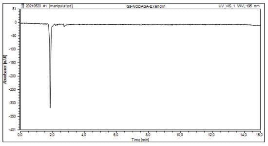 HPLC chromatogram of “cold” Ga-NODAGA-Exendin-4 to assess the content of HEPES in the final radiopharmaceutical.