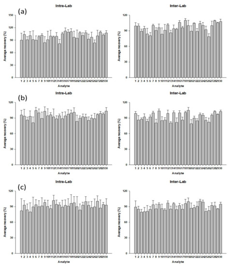 - Danezis, G.P.; Anagnostopoulos, C.J.; Liapis, K.; Koupparis, M.A. Multi-residue analysis of pesticides, plant hormones, veterinary drugs and mycotoxins using HILIC chromatography—MS/MS in various food matrices. Anal. Chim. Acta 2016, 942, 121–138. [Google Scholar] [CrossRef] [PubMed]