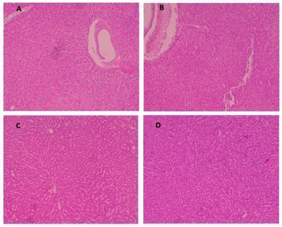 The liver tissue of the experimental animals was subjected to histopathological examination. Therefore, the hepatic tissue of rats was fixed in 40% formalin and embedded in paraffin wax, stained with hematoxylin and eosin for the processing.