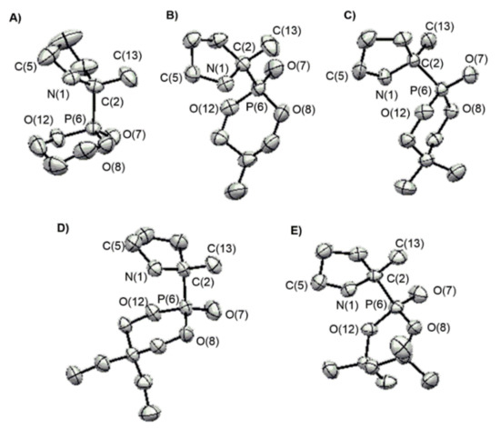 | N(1)–C(2)–P(6)–O(12) | −92.2(0) | 53.2(2) | −51.6(1) | 53.9(1) | 46.9(2) |