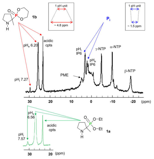 - Pietri, S.; Martel, S.; Culcasi, M.; Delmas-Beauvieux, M.C.; Canioni, P.; Gallis, J.L. Use of diethyl(2-methylpyrrolidin-2-yl)phosphonate as a highly sensitive extra- and intracellular 31P NMR pH indicator in isolated organs. J. Biol. Chem. 2001, 276, 1750–1758. [Google Scholar] [CrossRef] [Green Version]