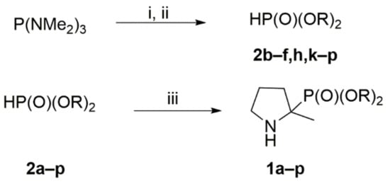 3.1.1. Synthesis of Dialkyl H-Phosphonates 2k–m, 2o, and 2p