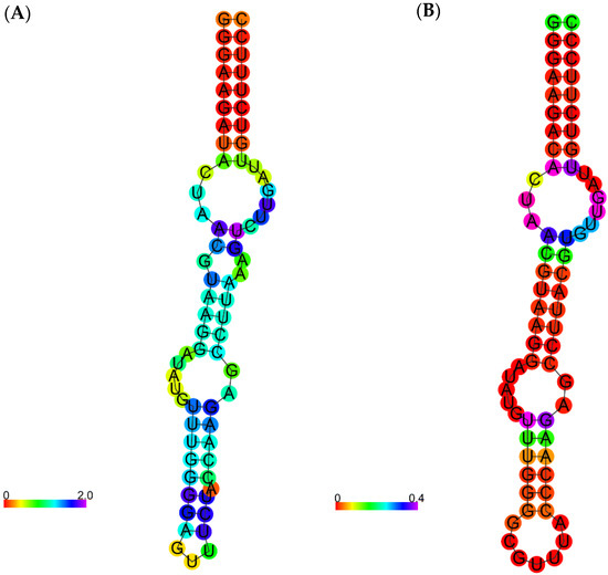 - Gruber, A.; Lorenz, R.; Bernhart, S.H.F.; Neuböck, R.; Hofacker, I.L. The Vienna RNA Websuite. Nucleic Acids Res. 2008, 36, W70–W74. [Google Scholar] [CrossRef] [PubMed]