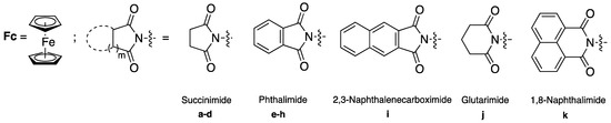 3e). To (ferrocenylmethyl) trimethylammonium iodide, potassium carbonate and phthalimide or succinimide, DMF was added (10 mL/mmol of iodide), and the mixture was heated to 80 °C overnight. After cooling to room temperature, the mixture was poured into water and was extracted three times with Et