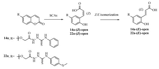 Hydrolysis of the coumarin scaffolds and Z/E geometrical isomerization.