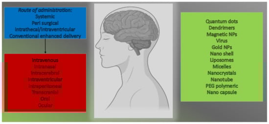 Nowadays, most antineoplastic drugs for BT are administered either systemically, intravenously, or orally based on the drug’s absorption. Although certain drugs have features that allow them to enter BTs, the constraints discussed above prevent most chemotherapies from being delivered [].