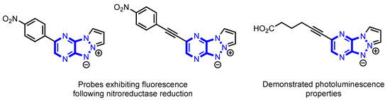 Emphasis in this review is placed on the more common derivatives of 2 and 8. In comparison to the heterocyclic scaffolds outlined in Figure 2, derivatives of 4, 6 and 10 are less common in the literature. Among fused heterocycles containing the more well-known fused 1,2,4-triazoles, both 1,2,4-triazolo[1,5-a]pyrimidines [8] and 1,2,4-triazolo[4,3-a]pyrazines [9] have been recently reviewed. Kumar and coworkers [10] surveyed 1,2,3-triazoles fused to various rings, both aromatic and non-aromatic. In the present review, we address approaches to the synthesis of 1,2,3-triazole-fused pyrazines and pyridazines and their related congeners, while setting two limitations: