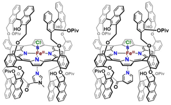 - Kossanyi, A.; Tani, F.; Nakamura, N.; Naruta, Y. Properties of a Binaphthyl-Bridged Porphyrin–Iron Complex Bearing Hydroxy Groups Inside Its Cavity. Chem.-Eur. J. 2001, 7, 2862–2872. [Google Scholar] [CrossRef]