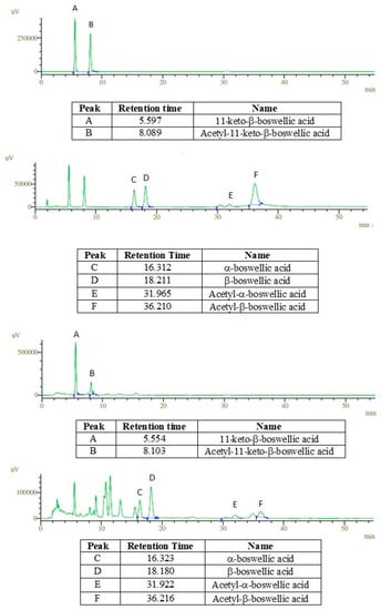 - Gomaa, A.A.; Farghaly, H.A.; Abdel-Wadood, Y.A.; Gomaa, G.A. Potential therapeutic effects of boswellic acids/Boswellia serrata extract in the prevention and therapy of type 2 diabetes and Alzheimer’s disease. Naunyn-Schmiedebergs Arch. Fur Exp. Pathol. Und Pharmakol. 2021, 394, 2167–2185. [Google Scholar] [CrossRef]