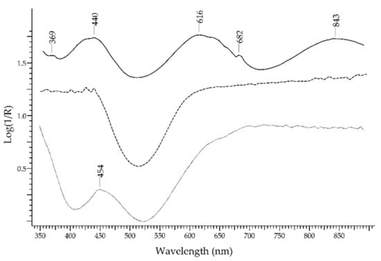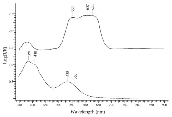 Chicago/Turabian StyleAceto, Maurizio, Elisa Calà, Federica Gulino, Francesca Gullo, Maria Labate, Angelo Agostino, and Marcello Picollo. 2022. "The Use of UV-Visible Diffuse Reflectance Spectrophotometry for a Fast, Preliminary Authentication of Gemstones" Molecules 27, no. 15: 4716. https://doi.org/10.3390/molecules27154716