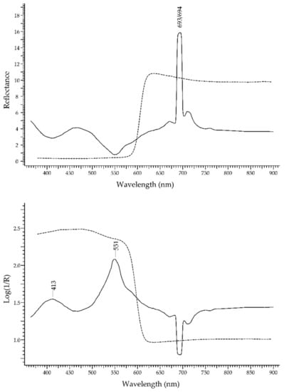 - Marfunin, A.S. Luminescence. In Spectroscopy, Luminescence and Radiation Centers in Minerals; Springer: Berlin/Heidelberg, Germany, 1979; pp. 141–222. [Google Scholar]