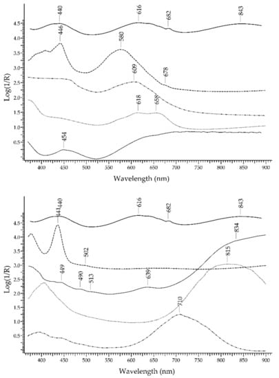 - California Institute of Technology Mineral Spectroscopy Server. Available online: http://minerals.gps.caltech.edu/FILES/Visible/Index.html (accessed on 21 June 2022).
