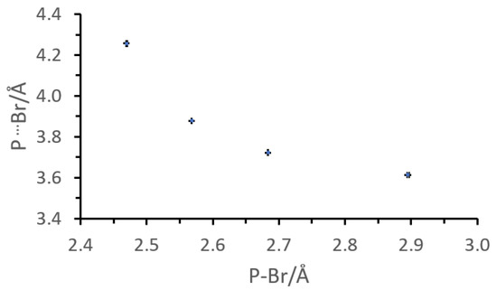 Plot of intramolecular (P–Br) vs. intermolecular (P⋯Br) distances in crystalline 2c–f.
