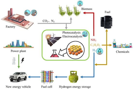 1]. Regarding the abovementioned information, the generation of energy is the most critical and effective step to solving the energy shortage. Researchers have mainly put forward three solutions to the energy generation process: (1) Increase the use of green energy (solar energy and hydrogen energy): electrolyze water through electrocatalysis technology and use sunlight to reduce CO