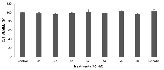Cell viability of HUVECs at 40 µM of tested flavones. Data are expressed as mean ± standard error of the mean (SEM), n = 3.