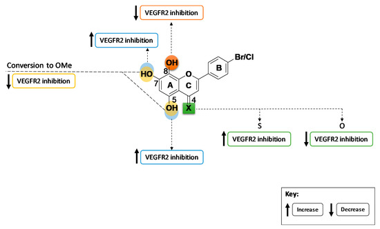 Summary of SAR of the tested panel of flavones on VEGFR2 phosphorylation inhibition.