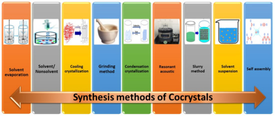 Solvent/non-solvent is a frequently used method for the production of ECCs due to its convenience, simplicity, and safety. In this method, the precursor solution is prepared by the agitation of the cocrystallizing components in a solvent. This is followed by the introduction of a nonsolvent that gets the job done either by crystallization or coating of particles to precipitate the cocrystals. Despite its simplicity and convenience, the large quantity of the solvent used poses serious concerns with respect to the quality control of the finished product [43].