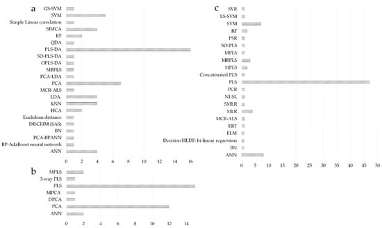 | Discrimination of four species of Boletaceae mushrooms from different geographical origins | UV-VIS; FT-IR | MLDF | PLS-DA; GS-SVM | PLS-DA | DF-individual model comparison | MLDF > individual model; GS-SVM > PLS-DA; | e.d. | [190] | |