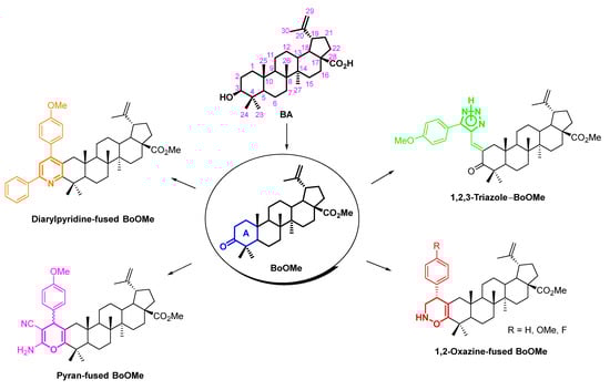 BA proved to be an attractive scaffold for chemical upgrading [6], including its functionalization with oxygen- and nitrogen-containing heterocycles with very encouraging biological properties, especially as antitumor agents [6,7,8,9].