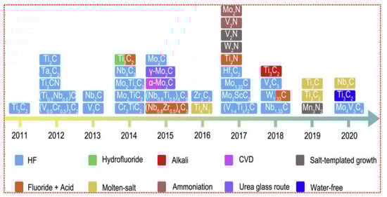MXenes synthesis routes timeline in last decade. Reproduced with permission from ref. [31] Copyright 2021, Elsevier.