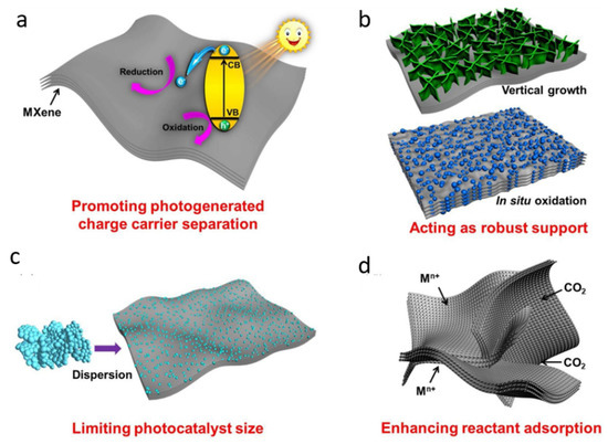 (a–d) Layered MXenes and their roles in photocatalysis. Reproduced with permission from ref. [118] Copyright 2020, Elsevier.