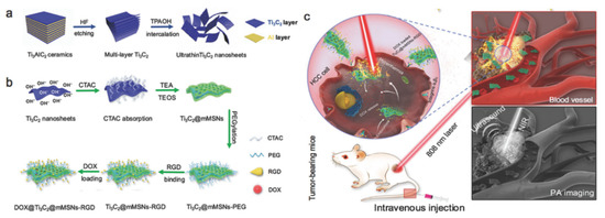 - Li, Z.; Zhang, H.; Han, J.; Chen, Y.; Lin, H.; Yang, T. Surface Nanopore Engineering of 2D MXenes for Targeted and Synergistic Multitherapies of Hepatocellular Carcinoma. Adv. Mater. 2018, 30, 1706981. [Google Scholar] [CrossRef] [PubMed]