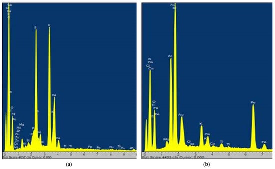 The SEM-EDS spectra of (a) MOLP and (b) SDMOLP.