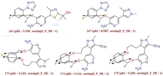 | 173 | CHEMBL3286816 | Cn1ncc2c1-c1cnc(N)c(c1)OCc1cc(F)ccc1OCCC2 | 9.42 | 0.38 |