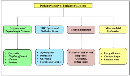 - Li, X.; Zhang, S.; Liu, S.; Lu, F. Recent Advances in Herbal Medicines Treating Parkinson’s Disease. Fitoterapia 2013, 84, 273–285. [Google Scholar] [CrossRef]