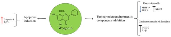 - Huynh, D.L.; Kwon, T.; Zhang, J.J.; Sharma, N.; Gera, M.; Ghosh, M.; Kim, N.; Cho, S.K.; Lee, D.S.; Park, Y.H.; et al. Wogonin suppresses stem cell-like traits of CD133 positive osteosarcoma cell via inhibiting matrix metallopeptidase-9 expression. BMC Complement. Altern. Med. 2017, 17, 304. [Google Scholar] [CrossRef]