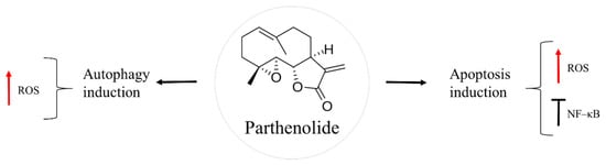 - Yang, C.; Yang, Q.O.; Kong, Q.-J.; Yuan, W.; Yang, Y.-P.O. Parthenolide Induces Reactive Oxygen Species-Mediated Autophagic Cell Death in Human Osteosarcoma Cells. Cell. Physiol. Biochem. 2016, 40, 146–154. [Google Scholar] [CrossRef]