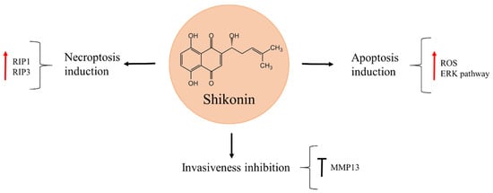 - Deng, B.; Qiu, B. Shikonin inhibits invasiveness of osteosarcoma through MMP13 suppression. Tumor Biol. 2015, 36, 9311–9317. [Google Scholar] [CrossRef] [PubMed]