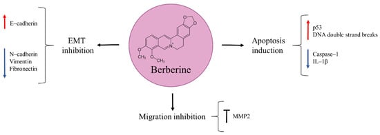 - Jiang, S.-X.; Qi, B.; Yao, W.-J.; Gu, C.-W.; Wei, X.-F.; Zhao, Y.; Liu, Y.-Z.; Zhao, B.-S. Berberine displays antitumor activity in esophageal cancer cells in vitro. World J. Gastroenterol. 2017, 23, 2511–2518. [Google Scholar] [CrossRef]