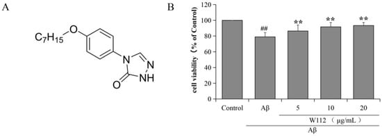 2.1. Effects of W112 on Cell Survival in Aβ25–35-Induced PC12 Cells