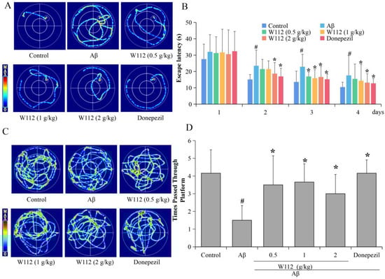 2.2. Effects of W112 on Spatial Learning and Memory Abilities in Rats